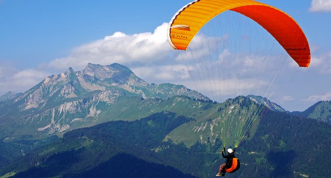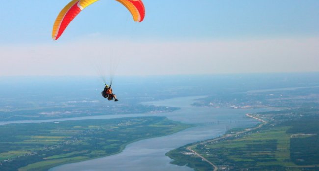 ¡Cruza los aires a más de seis mil metros de altura y planea utilizando las corrientes del viento para aterrizar en alrededor de 7 minutos! El parapente tiene que ser practicado con instrucción adecuada por profesionales, ya que son verdaderos planeadores que requieren dominar su manejo. Es indispensable tomar un curso, pero si quieres simplemente vivir la experiencia tendrá que ser al estilo Tandem.